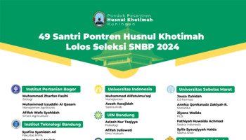Berita ini telah tayang di: https://kabarcirebon.pikiran-rakyat.com/ Kampus Husnul Khotimah Kuningan. /Iyan Irwandi/KC/ KABARCIREBON – Puluhan santri Madrasah Aliyah (MA) Husnul Khotimah Kabupaten Kuningan lolos sekaligus diterima di 19 perguruan tinggi negeri (PTN) ternama di Indonesia. Sebelumnya mereka mengikuti jalur seleksi nasional berdasarkan prestasi (SNBP) yang diumumkan tanggal 28 Maret 2024 melalui Read more…